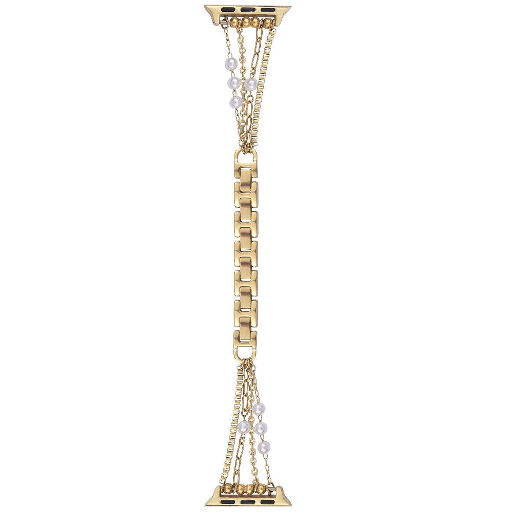 Classic and timeless, Cape Band for Apple Watch® is just thejewelry stack you’ve been looking for. The dainty chains and elegant pearlsmake for a perfect everyday fit.