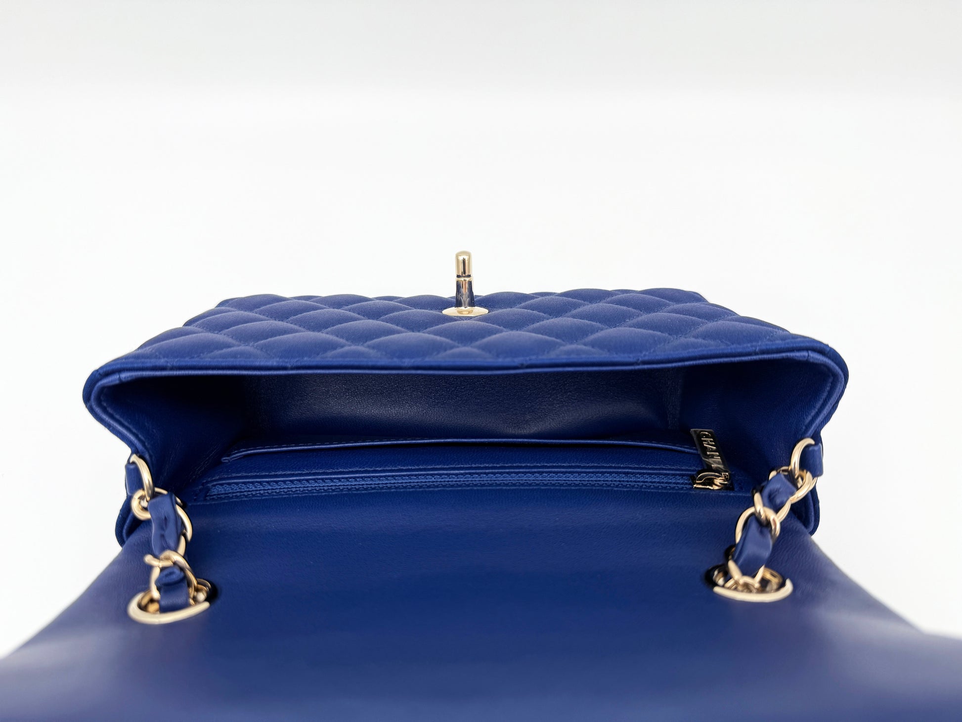 This stunning Chanel Mini Flap handbag is a truly exceptional piece. The vibrant shade of Royal Blue is a highly unique colour by Chanel which is rarely produced, especially in such a beautiful variant. The Mini Flap Bag is always very sought after and hard to find, combined with the uniqueness of this particular piece, is a very rare find.