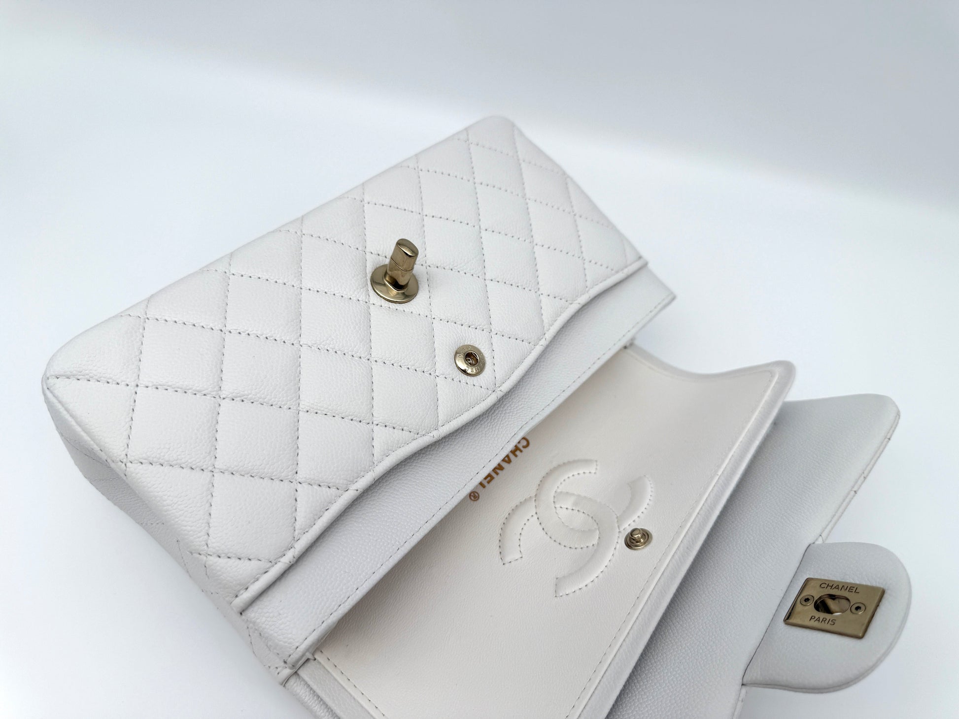 White is one of the most sought after and classic colours for the stunning Chanel Classic handbag, with this particular bag being a great example having recently been professionally restored to remove colour transfer.
