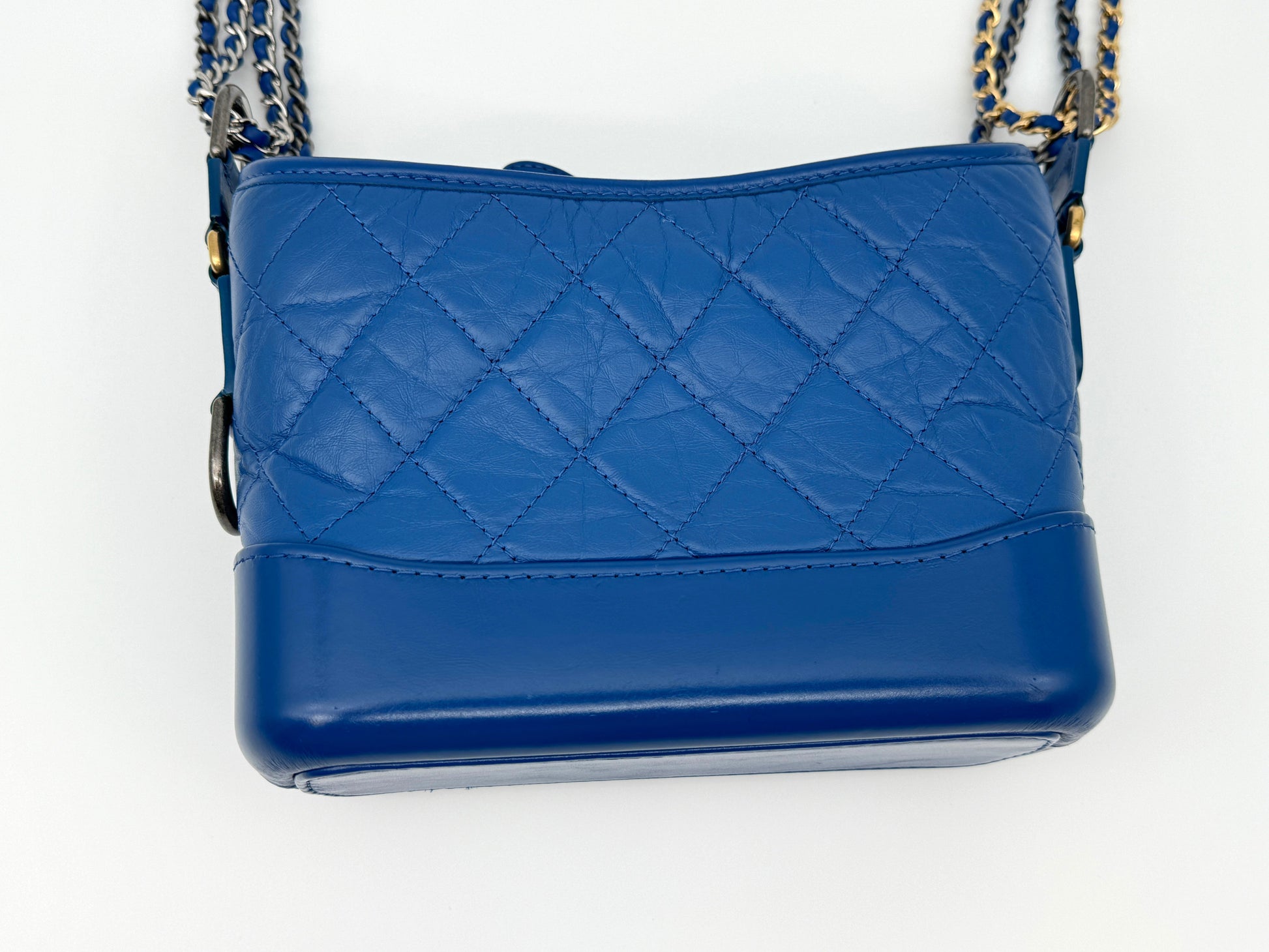 This Gabrielle handbag is the perfect size for a day to evening bag, with plenty of space whilst remaining stylish. Featured in this stunning Royal Blue colour from the 2019 Cruise collection, it is a very unique piece to come by. This bag has been well looked after, with just some small signs of wear around the base which is inevitable with the design of bag.