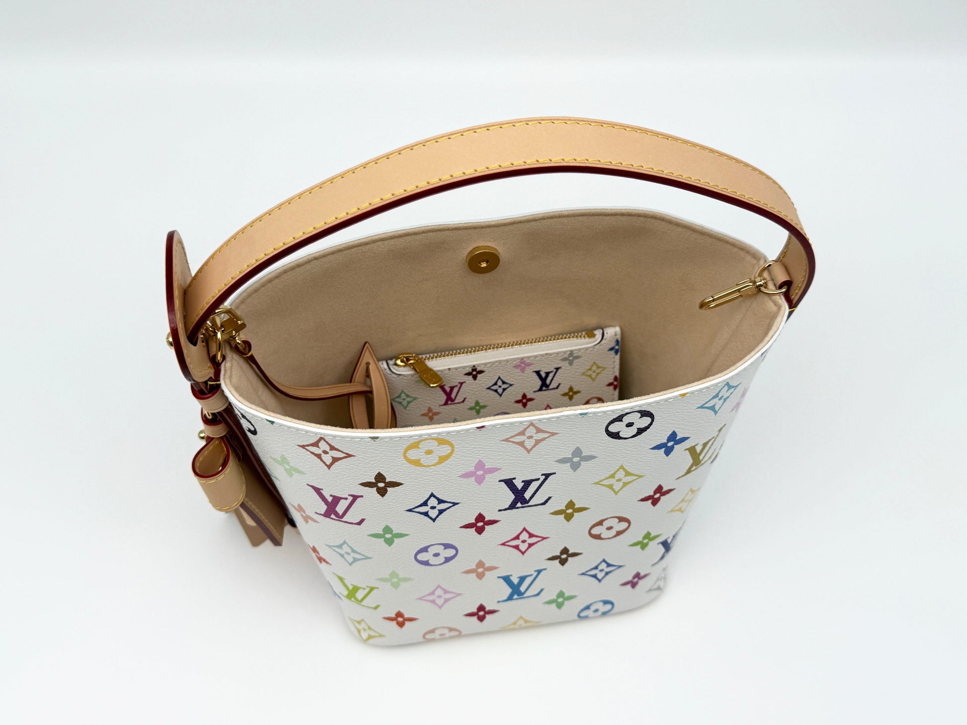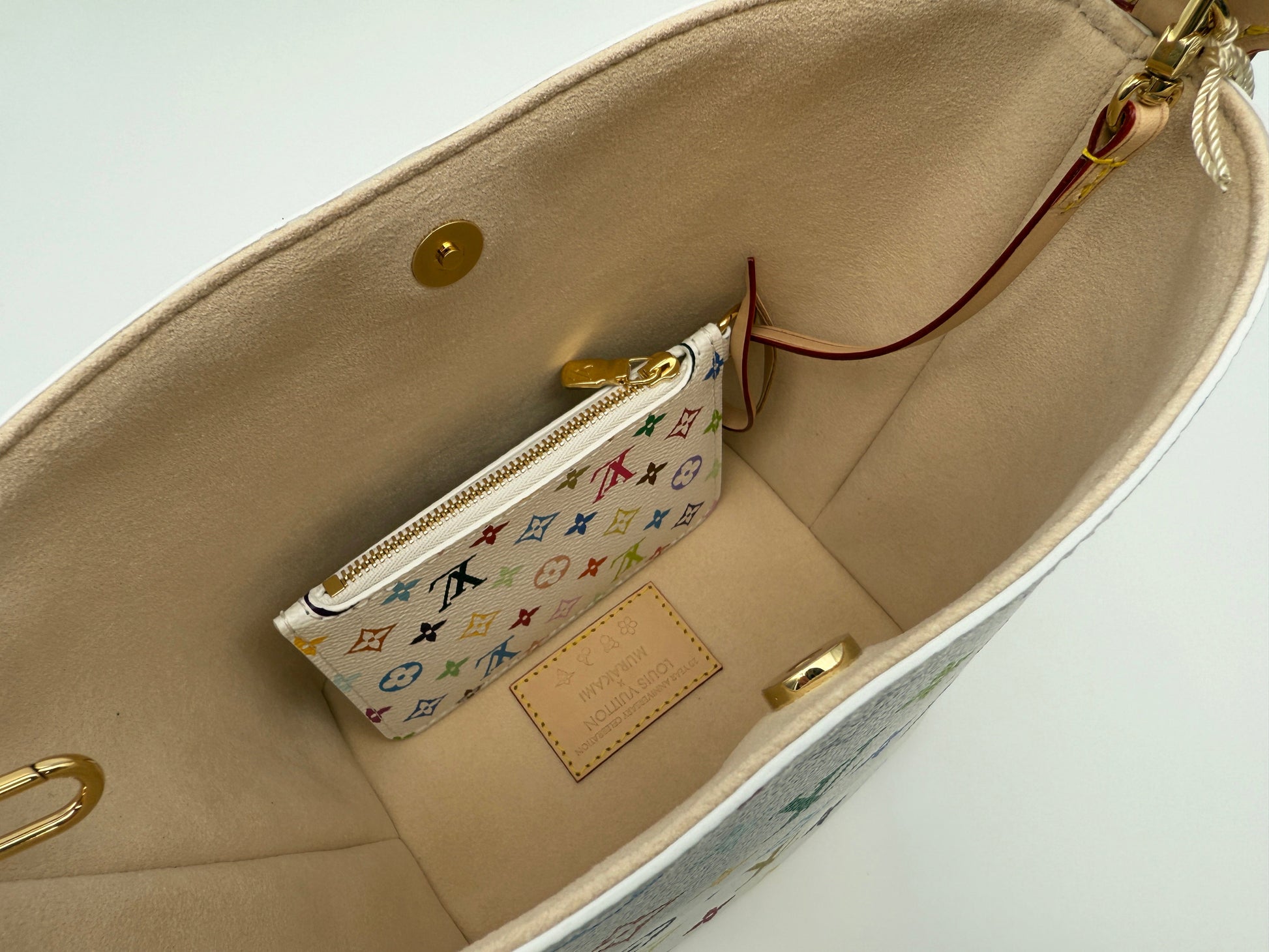 The highly coveted collaboration of Takashi Murakami with Louis Vuitton was originally created over 20 years ago and is very much a Y2K hit of pop culture. This collection has been revisited as a 20 year Anniversary Celebration, with some new designs and was an immediate hit with the collection selling out at launch. This collection is great for collectors and Louis Vuitton fans alike, with the All In BB being a new design for Louis Vuitton, this is one of the most popular bags from the collection. Shop at a great price before it sells out!