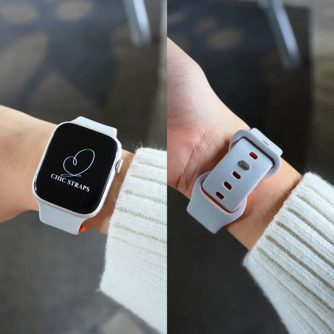 The Maia Straps brings bold style to your Apple Watch with a sleek two-tone design that stands out effortlessly. Crafted from high-performance fluoroelastomer, it’s soft, durable, and made to keep up with your active lifestyle—perfect for both intense workouts and laid-back days.