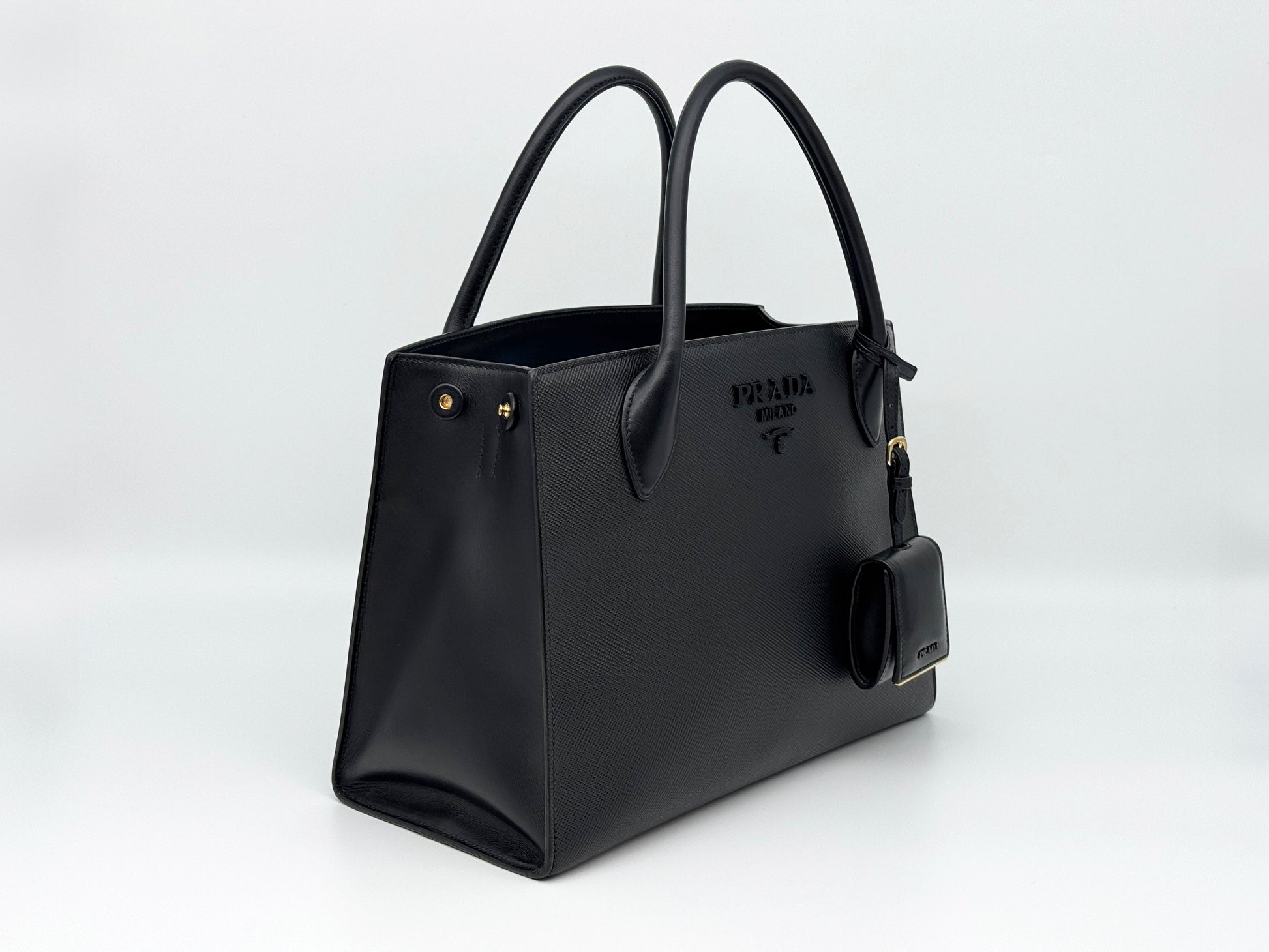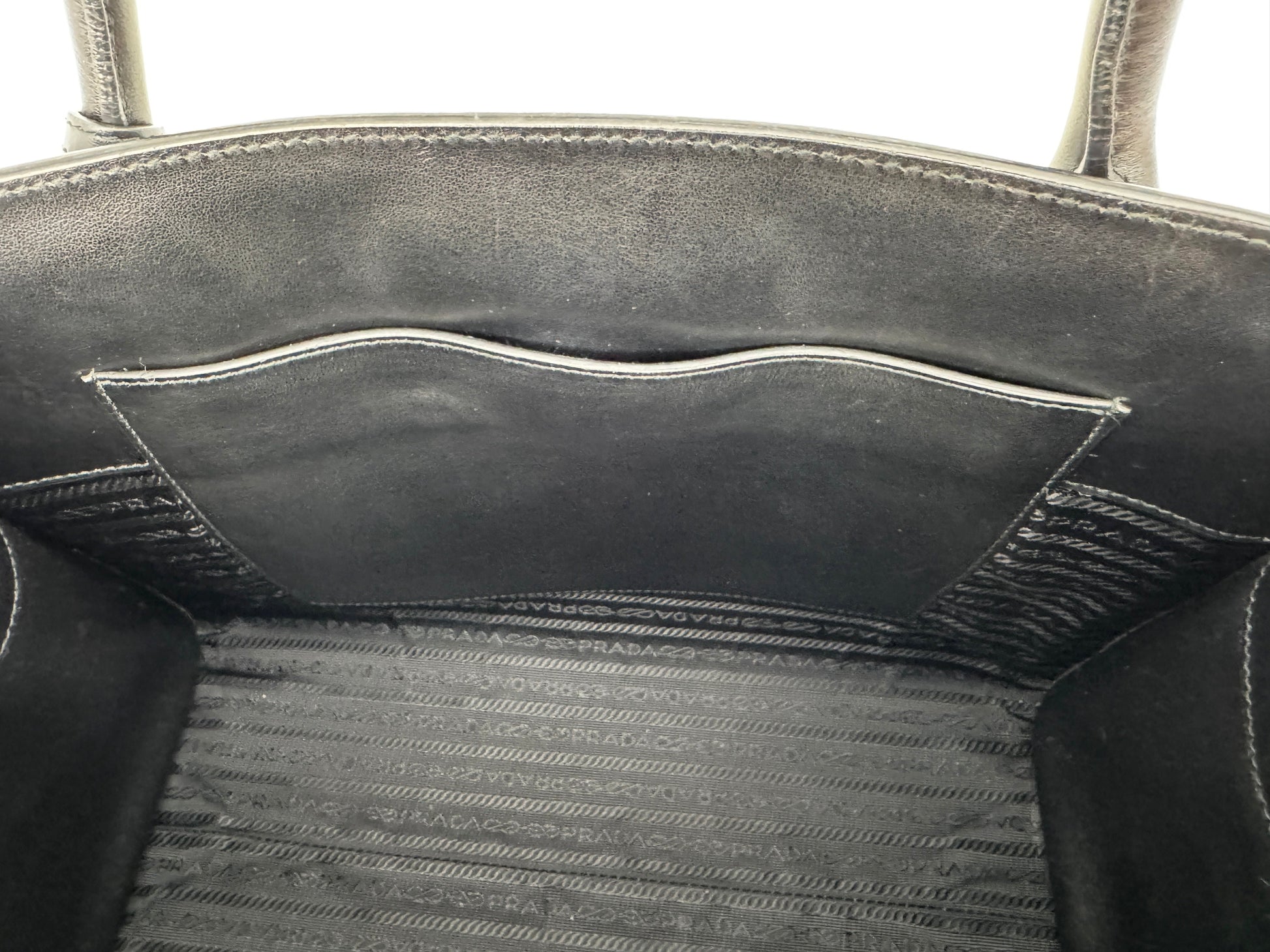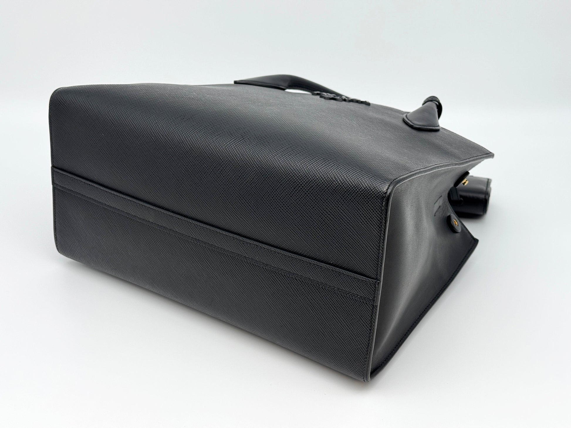 This stunning Prada 2 Way Tote Handbag is subtle but eye catching at the same time due to the unique monochrome hardware. Featuring Saffiano Leather on the majority of the exterior, the sides, handles as well as pouch charm are all in a smooth Calf Leather. Now discontinued, this bag can only be found on the resale market and this particular example is at a fantastic saving on the original price, with the retail being £2,600 before discontinuation.